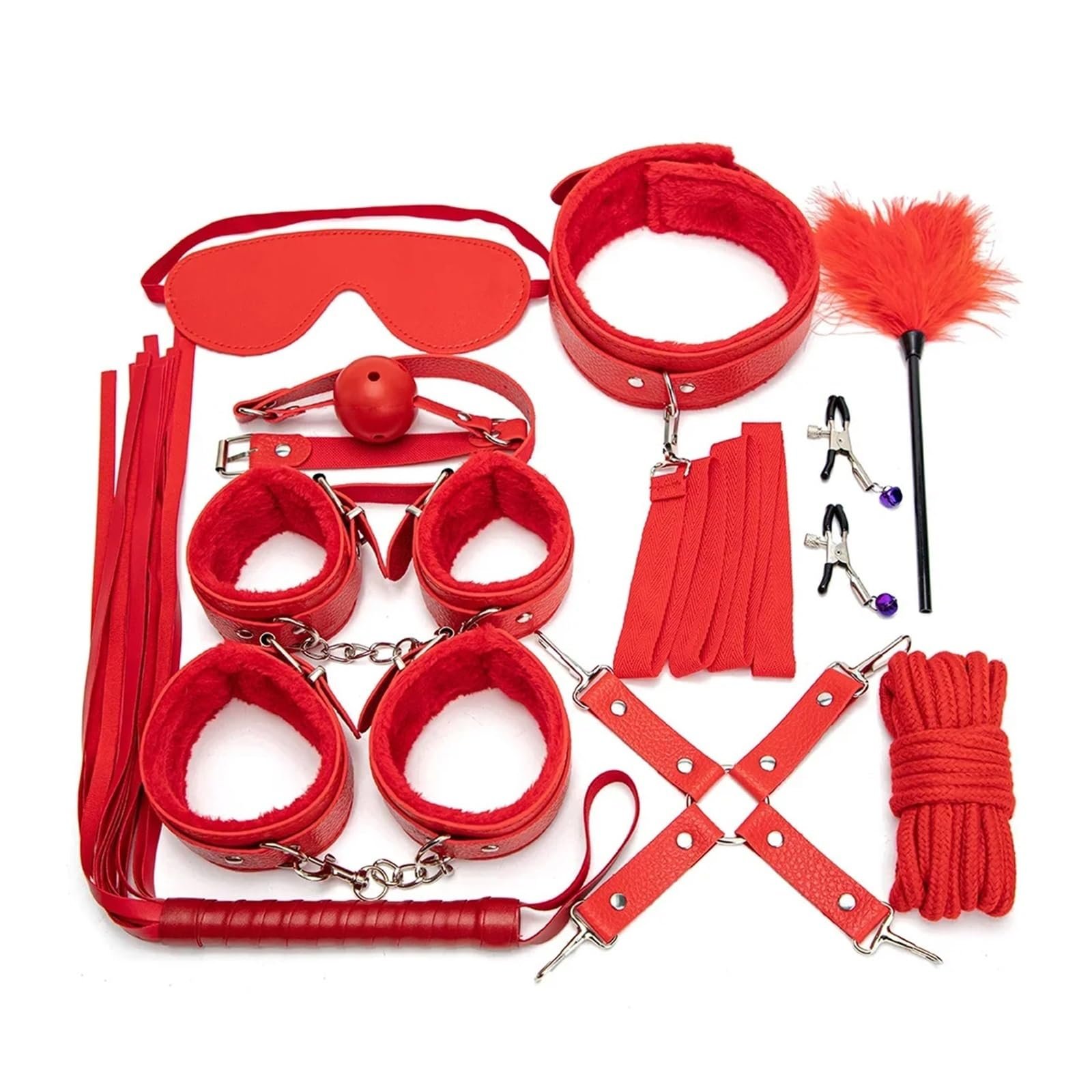 Colección de bondage de 10 piezas. Disponible en color rojo.